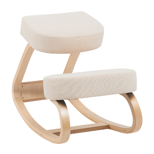 O design inclinado para a frente da cadeira ajoelhada incentiva os usuários a sentarem-se com a coluna naturalmente alinhada, reduzindo a pressão na região lombar. Essa postura ergonômica ajuda a aliviar dores crônicas nas costas causadas por maus hábitos ao sentar.