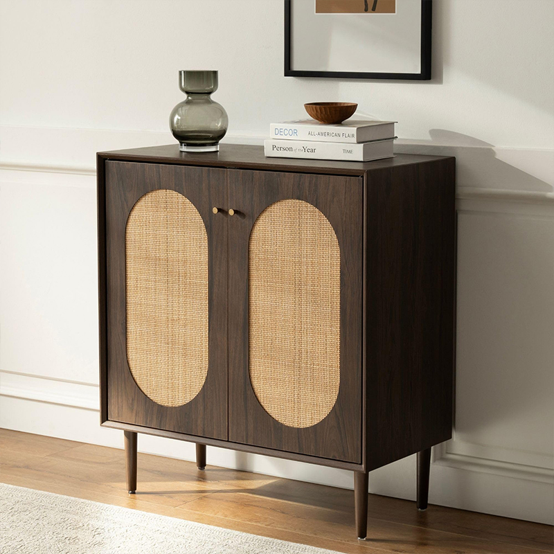 Página inicial / Produtos / Gabinete / Armário de vime de madeira de estilo rústico de duas portas em cor de nogueira (Y-C40)