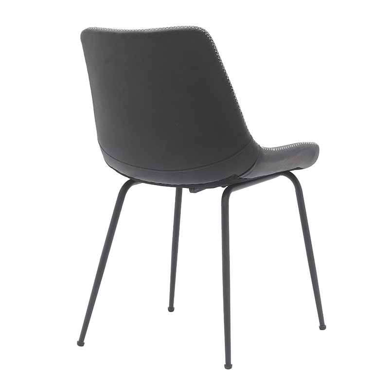 São utilizadas pernas de metal pintadas da cadeira, com estabilidade após testes de suporte de carga, e os pés antiderrapantes inferiores reduzem o ruído e o desgaste do piso. O tecido PU é antiincrustante e fácil de limpar, além de ser fácil de manter todos os dias. O tom preto é combinado com linhas simples, que podem se integrar perfeitamente em vários estilos de decoração como nórdico e industrial, tornando-se um destaque visual na mesa de jantar.