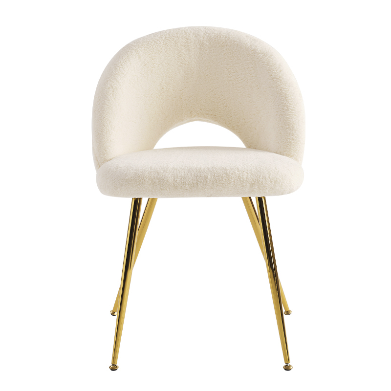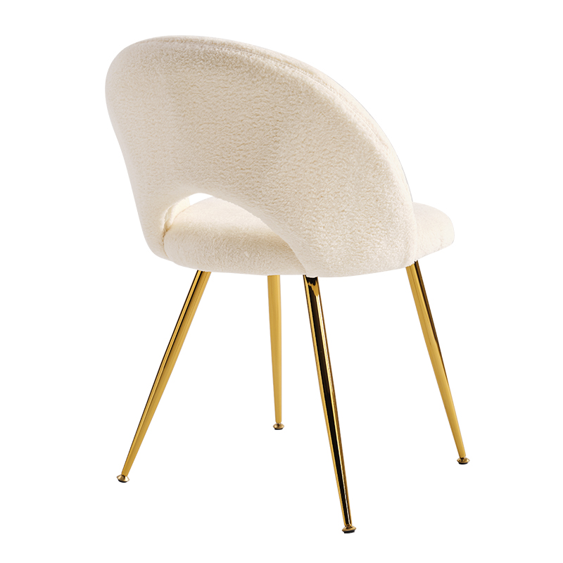 Página inicial / Produtos / Cadeira de jantar / Cadeiras de jantar com pernas douradas de veludo branco com costas baixas (Y-C15)