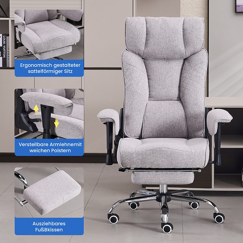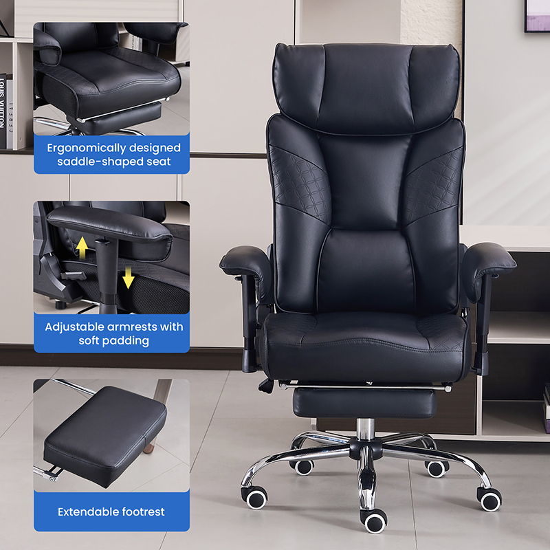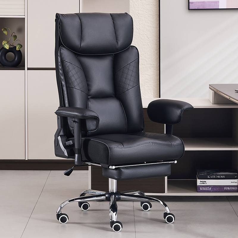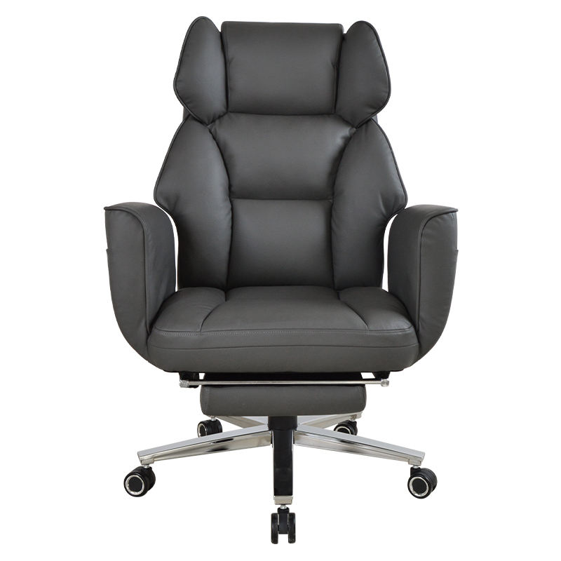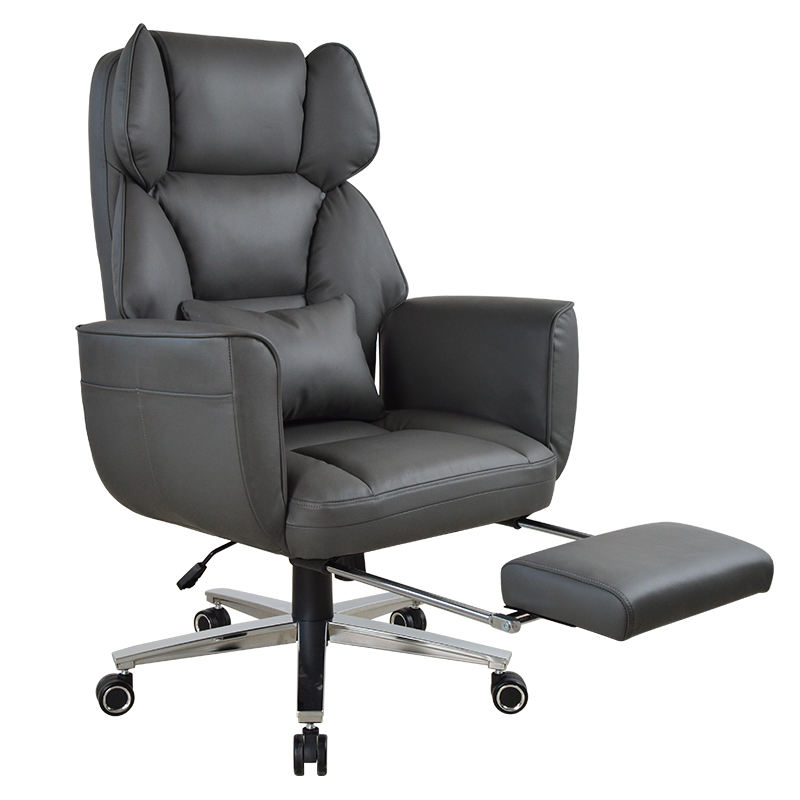 Apresentamos nossa linha premium de cadeiras de escritório executivas, meticulosamente elaboradas para redefinir o luxo e a excelência ergonômica do seu espaço de trabalho. Estas cadeiras são mais do que apenas soluções de assento; eles são uma prova de sua estatura profissional, combinando design sofisticado com conforto incomparável. Fabricada com os melhores materiais, cada cadeira executiva possui uma estrutura robusta construída em alumínio de alta qualidade ou madeira polida, garantindo durabilidade que resiste ao teste do tempo. O estofamento flexível em couro de flor integral ou tecido premium envolve você em opulência, oferecendo uma escolha de cores que combinam com qualquer estética de escritório, do preto clássico aos elegantes tons de terra. Nossas cadeiras apresentam designs ergonômicos avançados, incluindo suporte lombar ajustável, que se adapta à curva natural da coluna, reduzindo a tensão nas costas durante longas horas de trabalho. Com assentos ajustáveis em altura, mecanismos de inclinação reclináveis e funcionalidade giratória de 360 graus, eles promovem posturas sentadas dinâmicas, melhorando o foco e a produtividade. Apoios de braços inovadores, acolchoados para bom conforto, geralmente são ajustáveis em altura e largura, proporcionando suporte personalizado para aliviar a tensão nos ombros e pescoço. A base de cinco estrelas, equipada com rodízios de rolamento suave, garante estabilidade ao mesmo tempo que permite movimento sem esforço em várias superfícies do piso sem causar danos. Abrace o auge dos assentos de escritório com as nossas cadeiras de escritório executivas – onde a elegância encontra a ergonomia, transformando o seu espaço de trabalho num reino de produtividade e sofisticação. Eleve sua rotina diária; invista em uma cadeira que não apenas complemente seu status executivo, mas que contribua ativamente para o seu bem-estar. Experimente a diferença hoje.