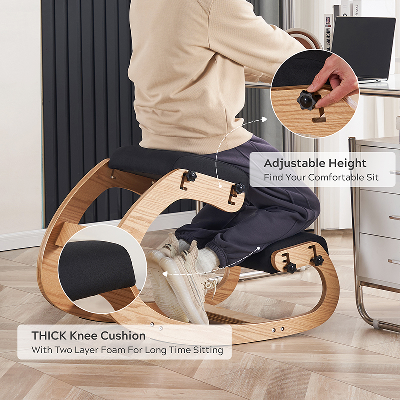 O que mais chama a atenção na cadeira de escritório ajoelhada é seu conceito de design exclusivo. Ao contrário das tradicionais cadeiras de escritório verticais ou reclináveis, a cadeira combina ajoelhamento e leve balanço, incentivando os usuários a trabalhar em uma postura mais natural e relaxada. Este design pode não apenas reduzir efetivamente a pressão espinhal e promover a circulação sanguínea, mas também aliviar a fadiga causada por ficar sentado por muito tempo até certo ponto. A função de balanço da cadeira simula o efeito de um leve exercício, ajudando os usuários a relaxar o corpo e a mente sem perceber, melhorando assim a eficiência no trabalho e a criatividade.