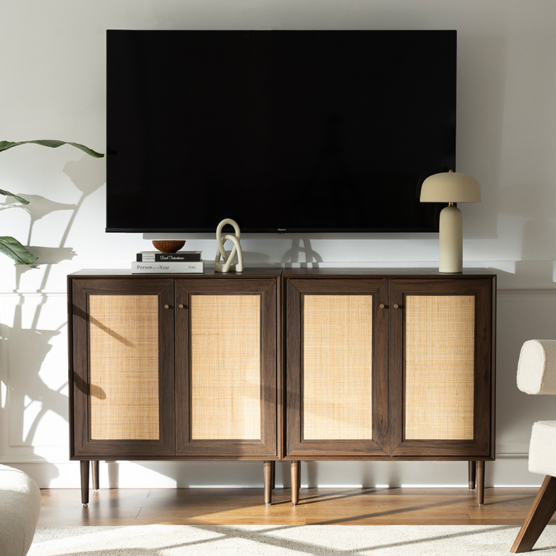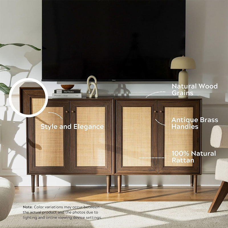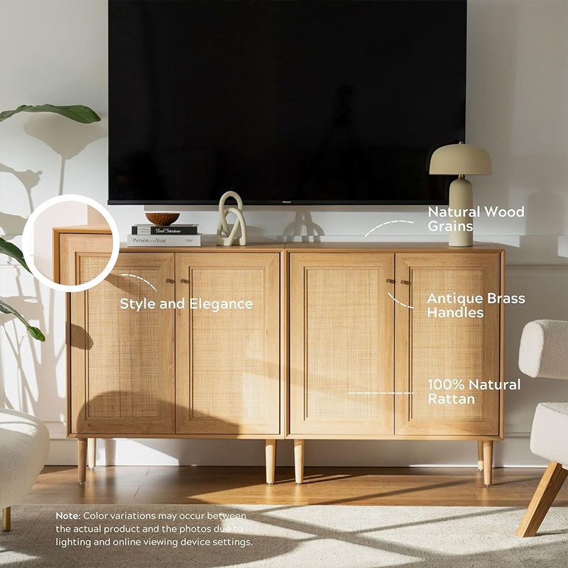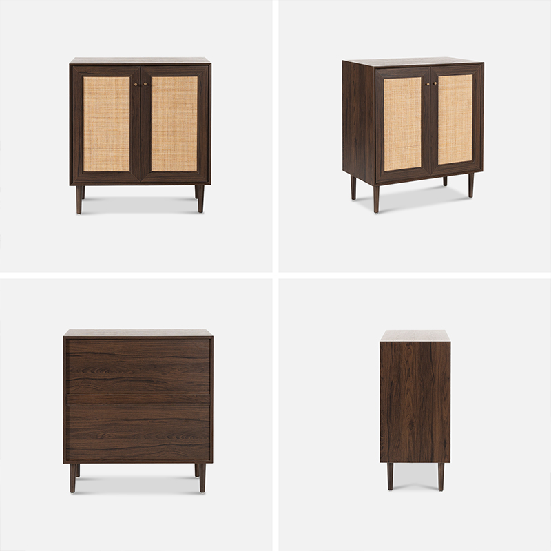 | Materiais | Tábua de madeira maciça com acabamento em MDF e acabamento em rattan verdadeiro |